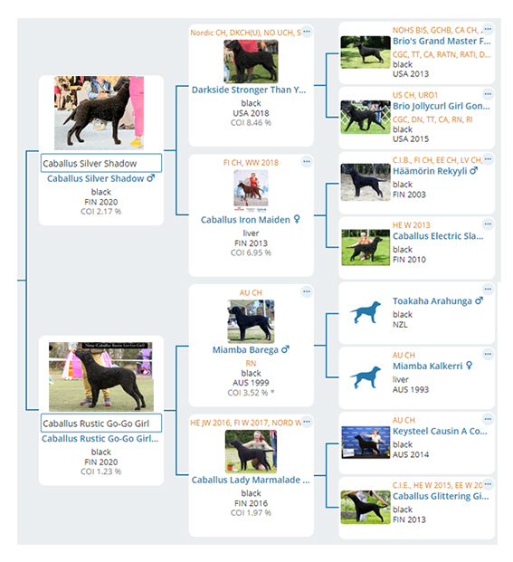 Tämän pentueen sukutaulussa on